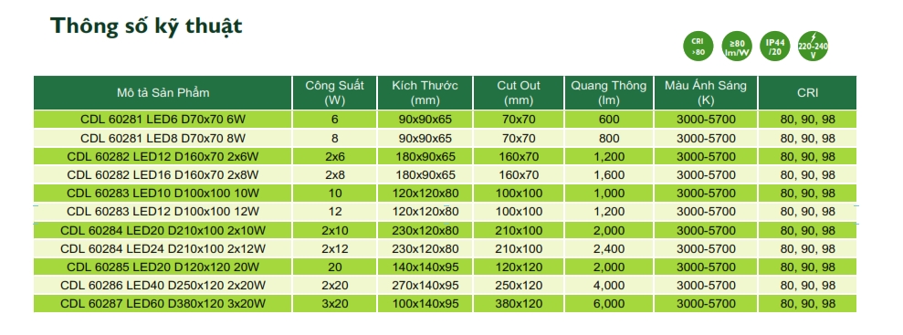 Thông số kỹ thuật sản phẩm