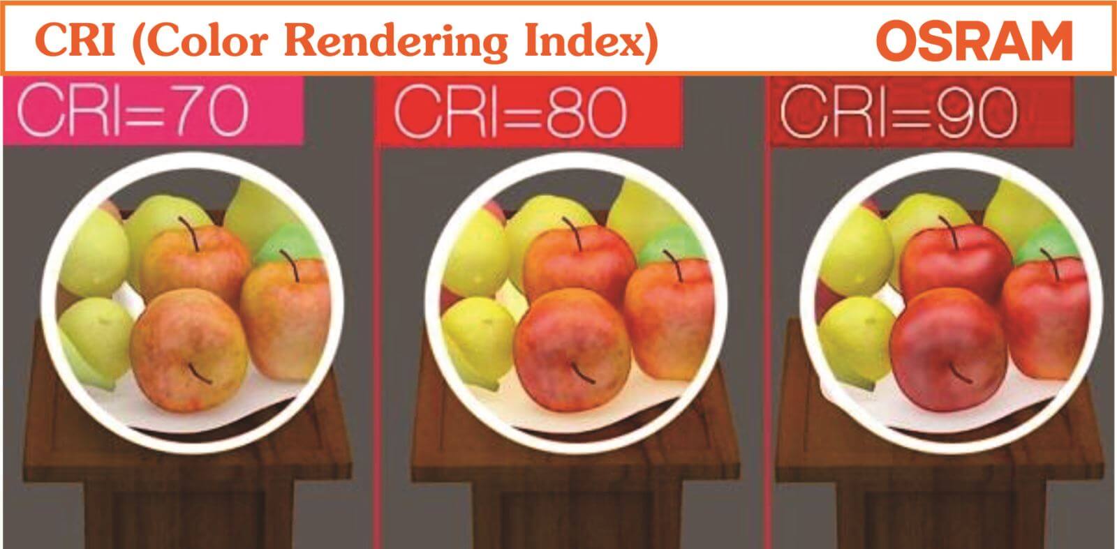 -Yêu cầu về độ hoàn màu: Độ hoàn màu CRI được đo theo thang đo Ra 1-100 (với 100 là cao nhất), được quyết định bởi loại đèn được lựa chọn và giống như yêu cầu về độ rọi mà tùy theo yêu cầu các khâu công việc mà yêu cầu về độ hoàn màu cũng sẽ khác nhau. Thường sẽ có 3 loại yêu cầu về CRI: 80-100 Ra cho khu vực yêu cầu về độ chính xác của màu sắc cao hoặc các khu vực kiểm định.60-80 Ra cho các khu vực yêu cầu màu sắc vừa phải như các khu vực sản xuất,... 40-60 Ra cho các khu vực không yêu cầu sự thể hiện về màu sắc.
