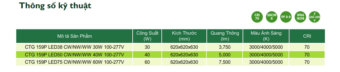 Thông số kỹ thuật Đèn LED chiếu sáng đường phố cảnh quan sân vườn The Citylight CTG 159P