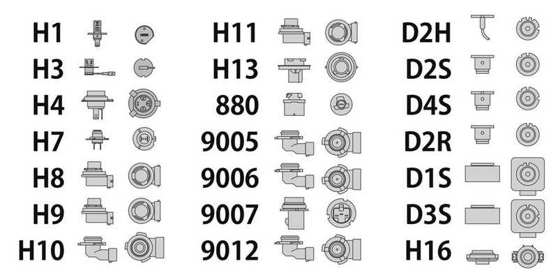 Bảng tra chân bóng đèn ô tô dưới đây sẽ giúp bạn dễ nhận biết chiếc xe của mình đang sử dụng loại bóng đèn nào?